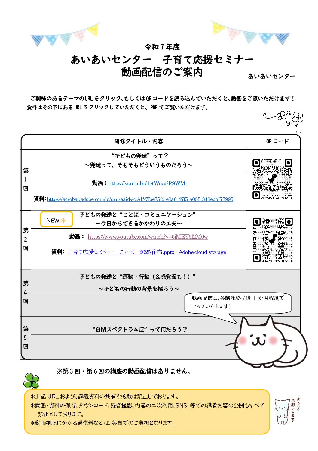 保護中: R7年度 あいあいセンター 子育て応援セミナー動画配信のご案内