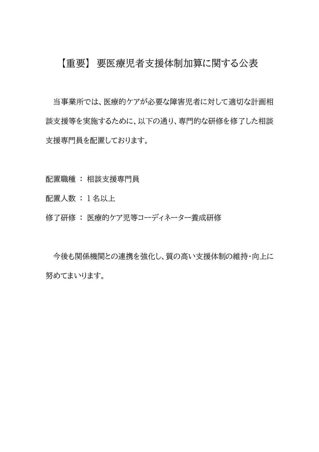 要医療児者支援体制加算に関する公表
