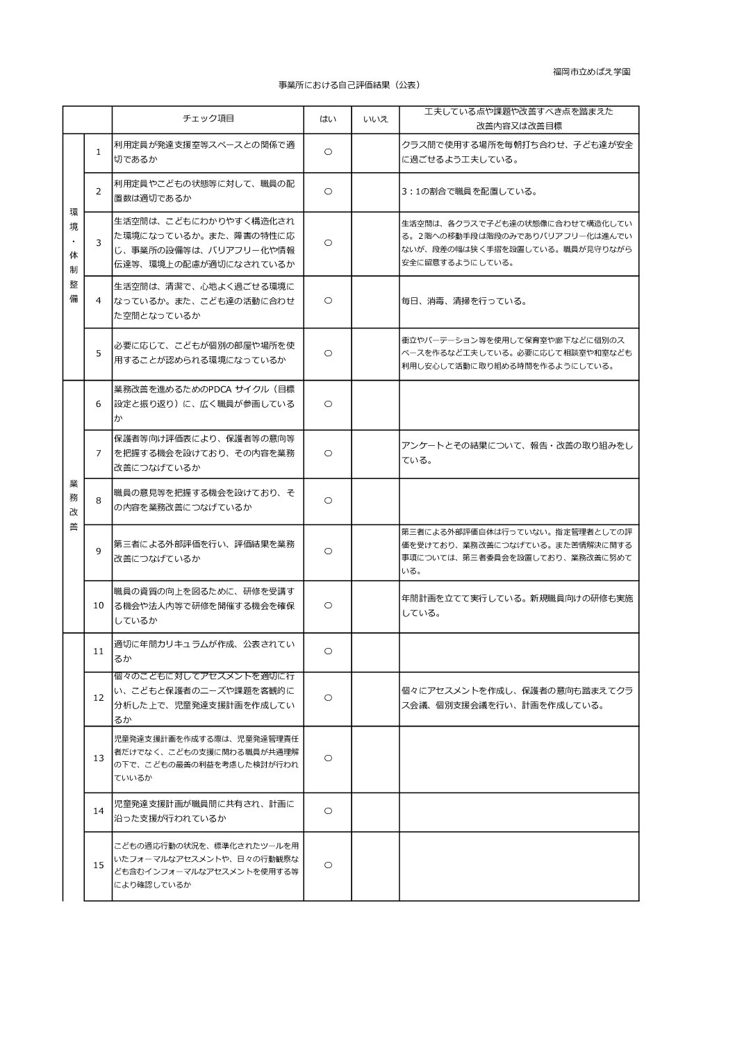 【児童発達支援】③事業所における自己評価結果