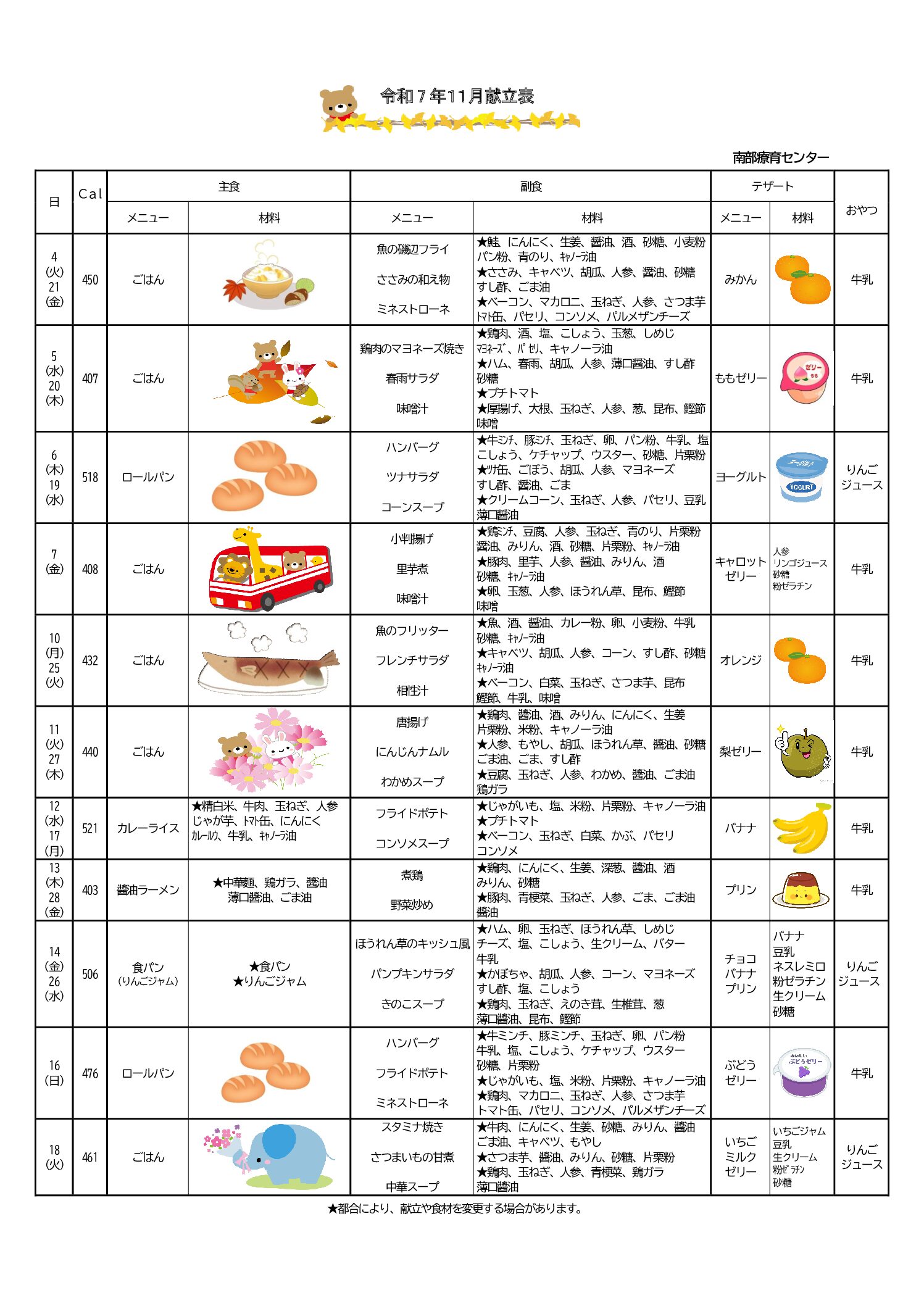 11月献立表