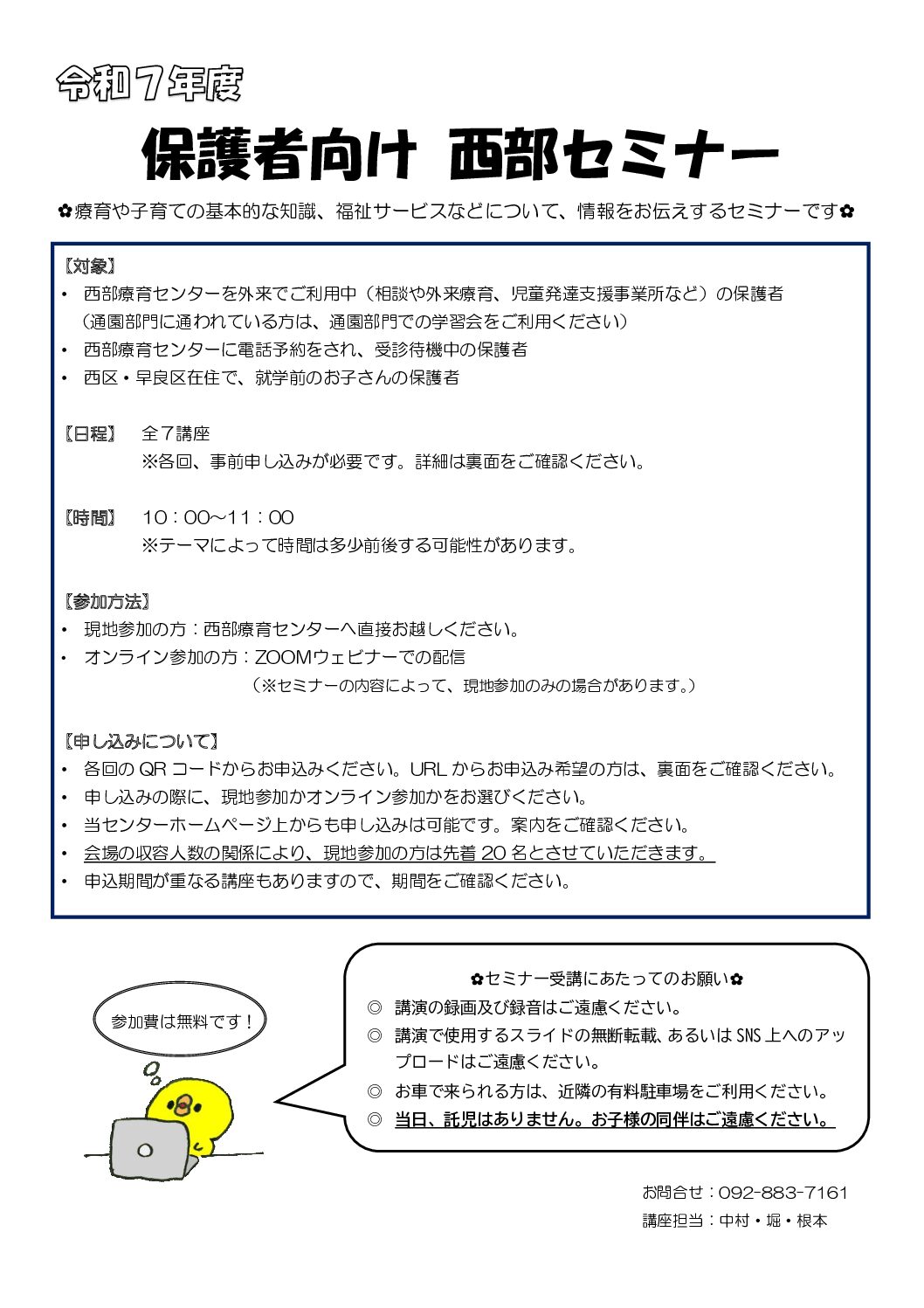 お知らせ第7回の保護者向け西部セミナーについてのお知らせです。