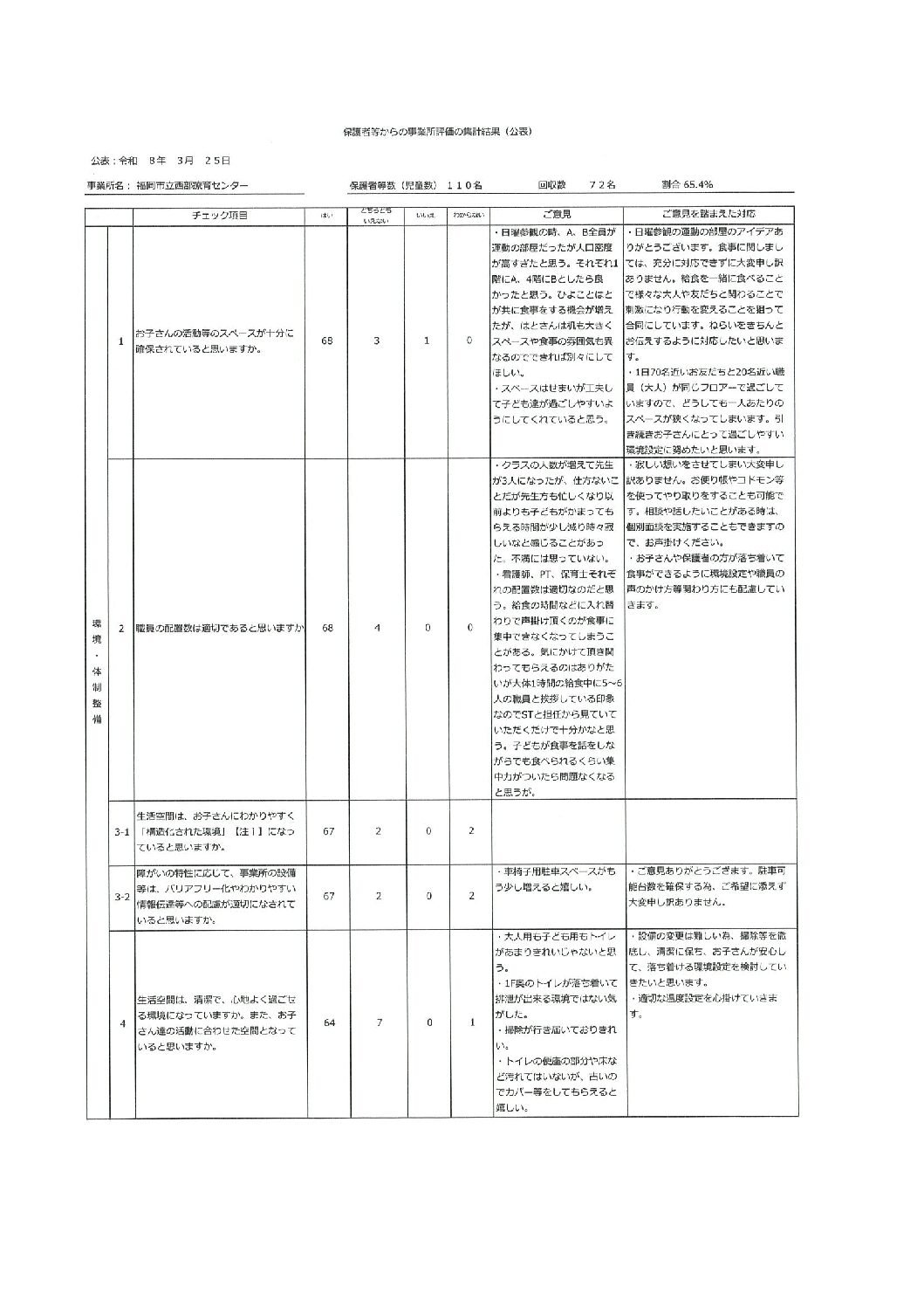 児童発達支援事業所評価結果(西部療育センター)
