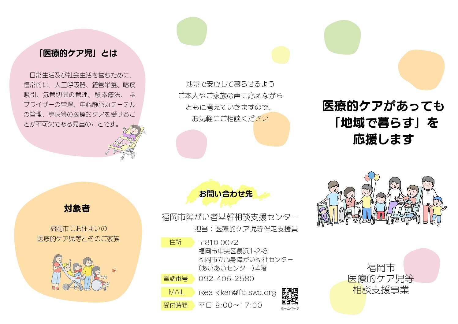 お知らせ医療的ケア児等とその家族が、安心して地域での生活を送ることができるよう、福岡市障がい者基幹相談支援センターに、福岡市医療的ケア児等伴走支援員が配置されています。