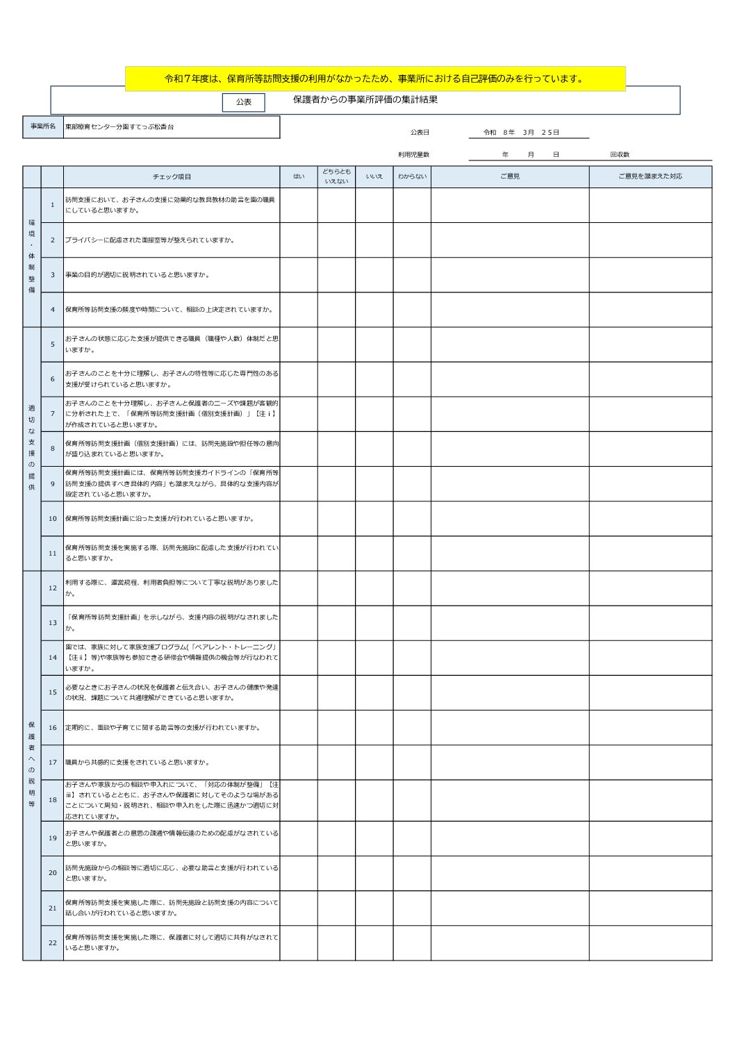 令和7年度保育所等訪問支援自己評価結果(分園すてっぷ松香台)