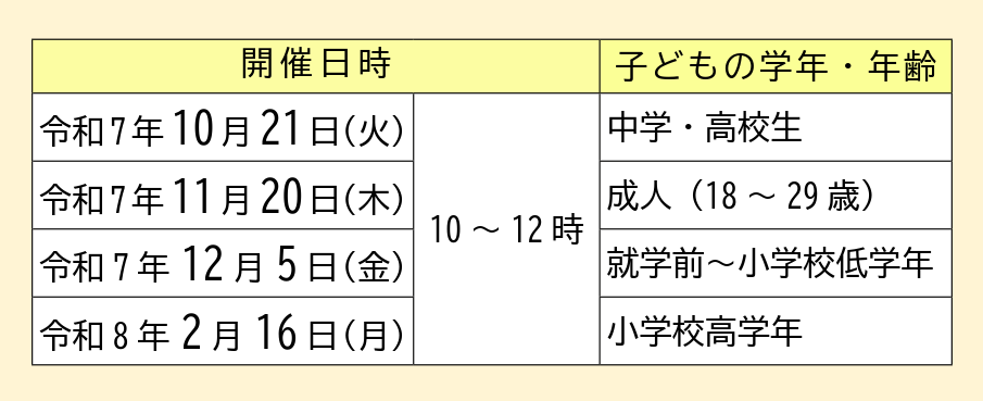 ・発達障がいの診断を受けた就学前~高校生の子どもの保護者対象