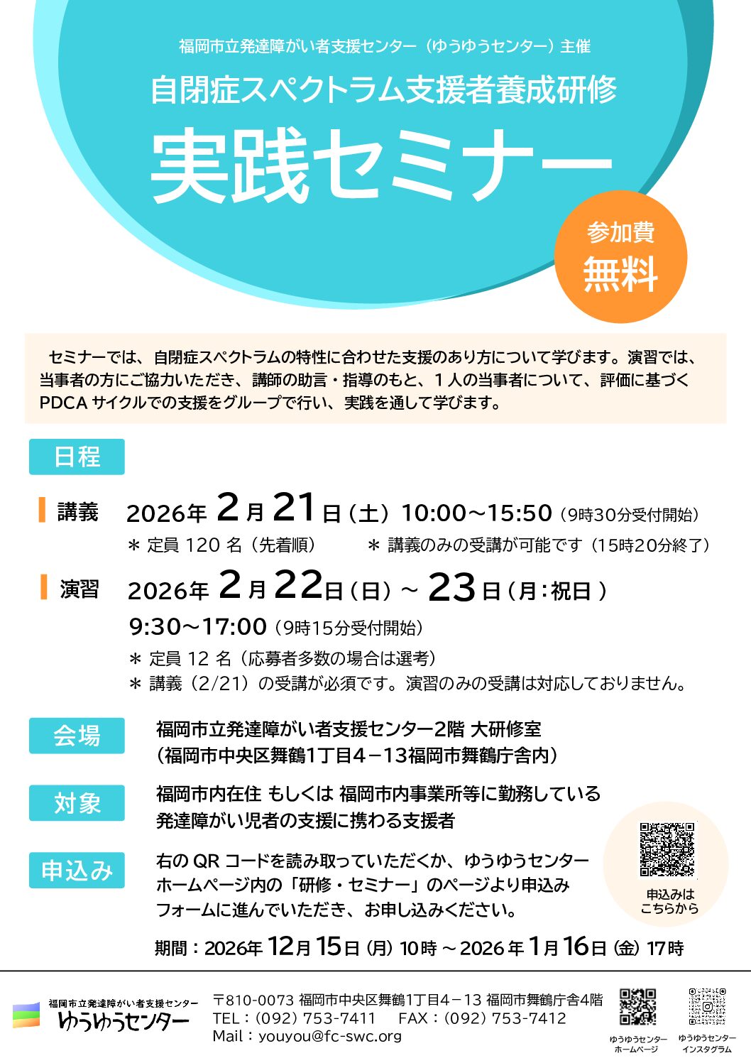 福岡市内在住 もしくは 福岡市内事業所等に勤務している発達障がい児者の支援に携わる支援者
