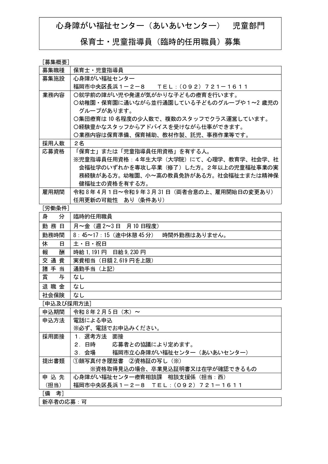 保育士・児童指導員(臨時的任用職員)