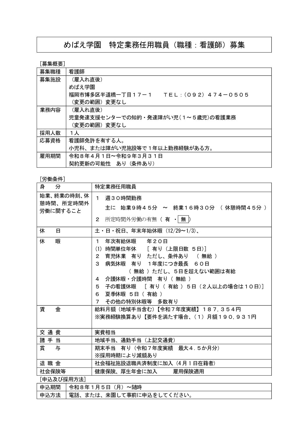 特定業務任用職員(職種:看護師)募集