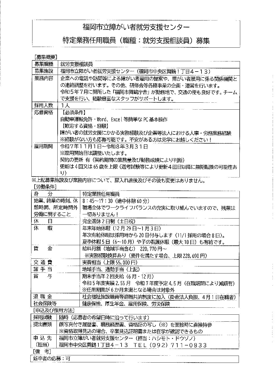 特定業務任用職員(職種:就労支援相談員)募集